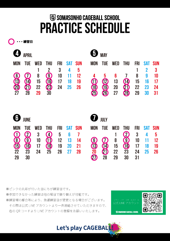 スクールスケジュール【2026.4~2026.6】